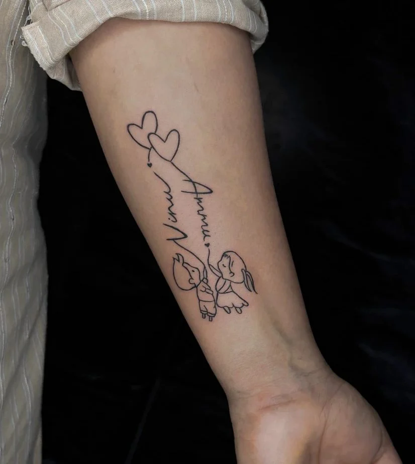 Placed along the inner forearm, this tattoo feels personal, gentle, and perfect for celebrating family love in a soft, meaningful way.