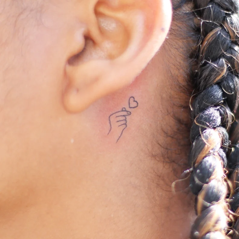 Heart Gesture Behind the Ear Tattoo