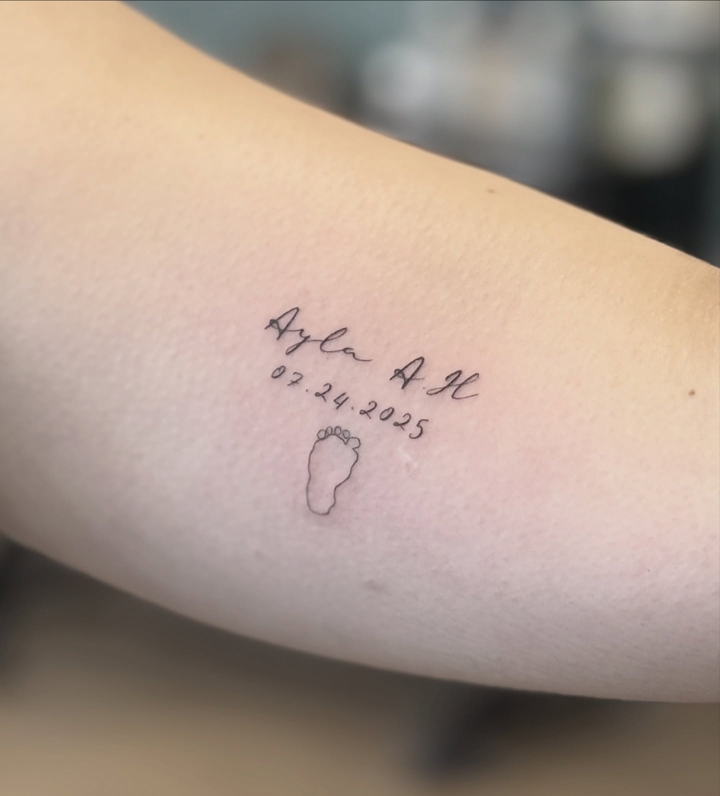 Placed on the inner arm, it stays close and meaningful, perfect for honoring a birth and the life-changing moment it represents in a gentle, timeless way.
