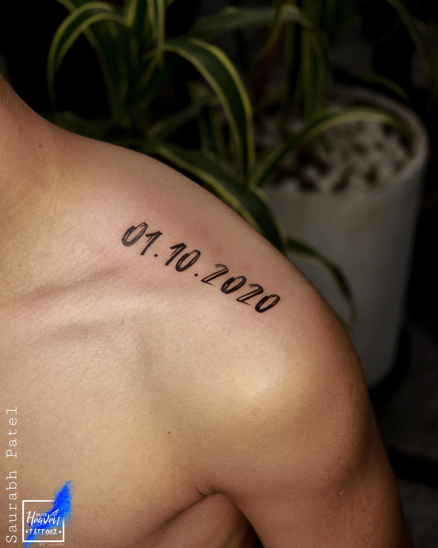 Shoulder Script Date Tattoo