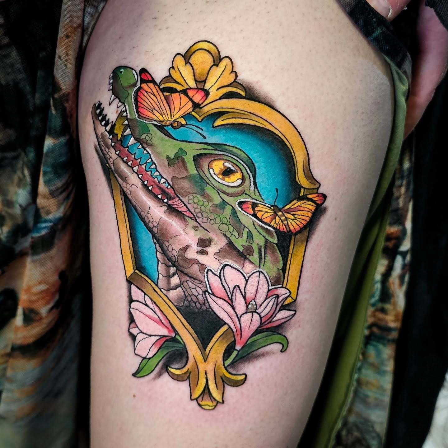 Crocodile and Butterflies Earthy Tattoo
