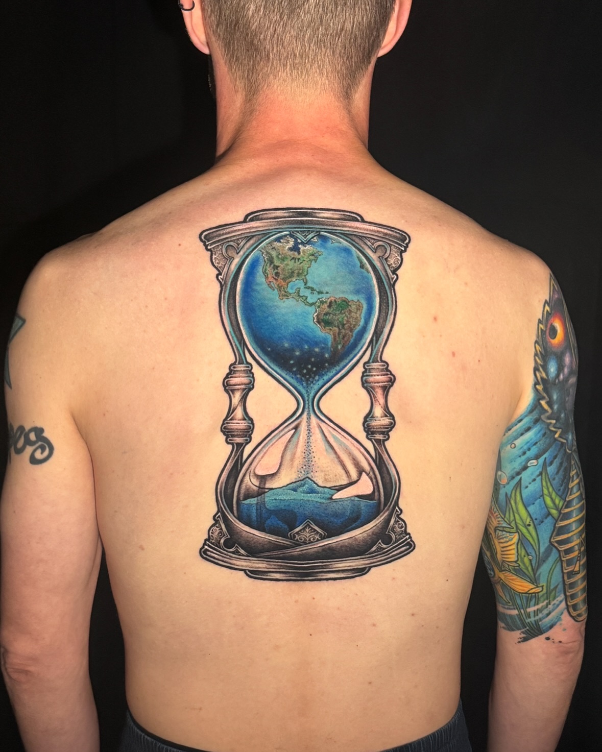 Earth Hourglass Back Tattoo