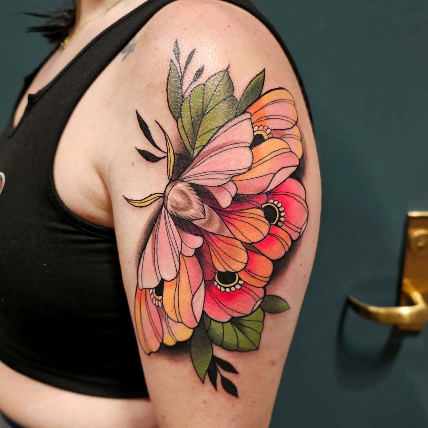 Moth and Flower Earthy Tattoo