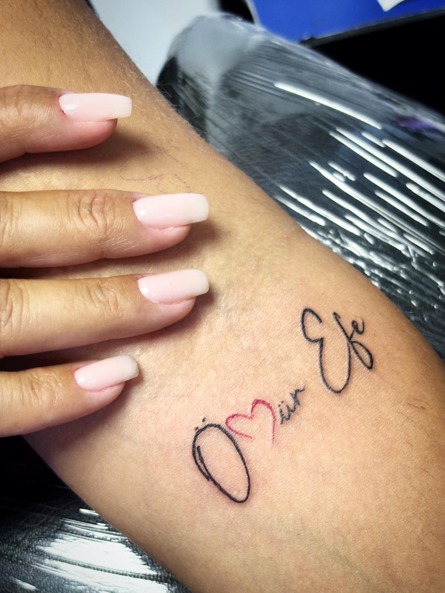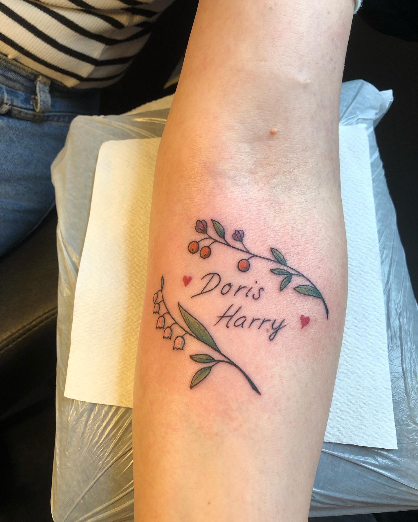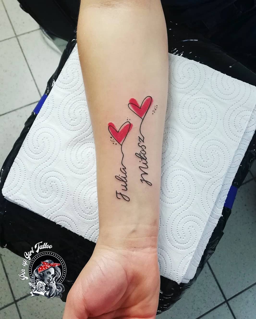 Placed along the forearm, the design feels personal, gently visible enough for daily loving reminders.