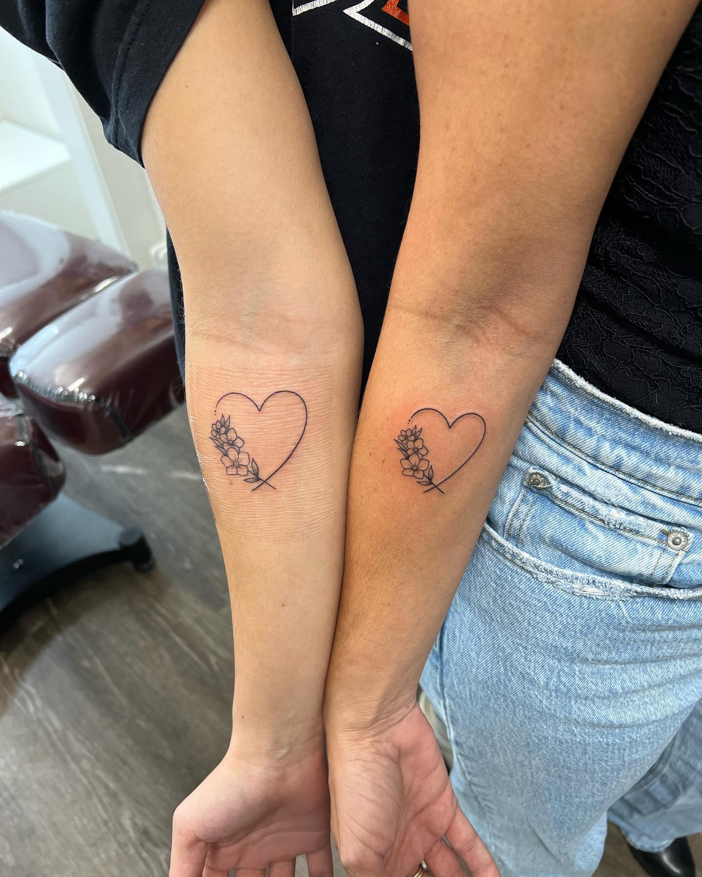 This matching tattoo works well for families who want a clear symbol of love and connection.