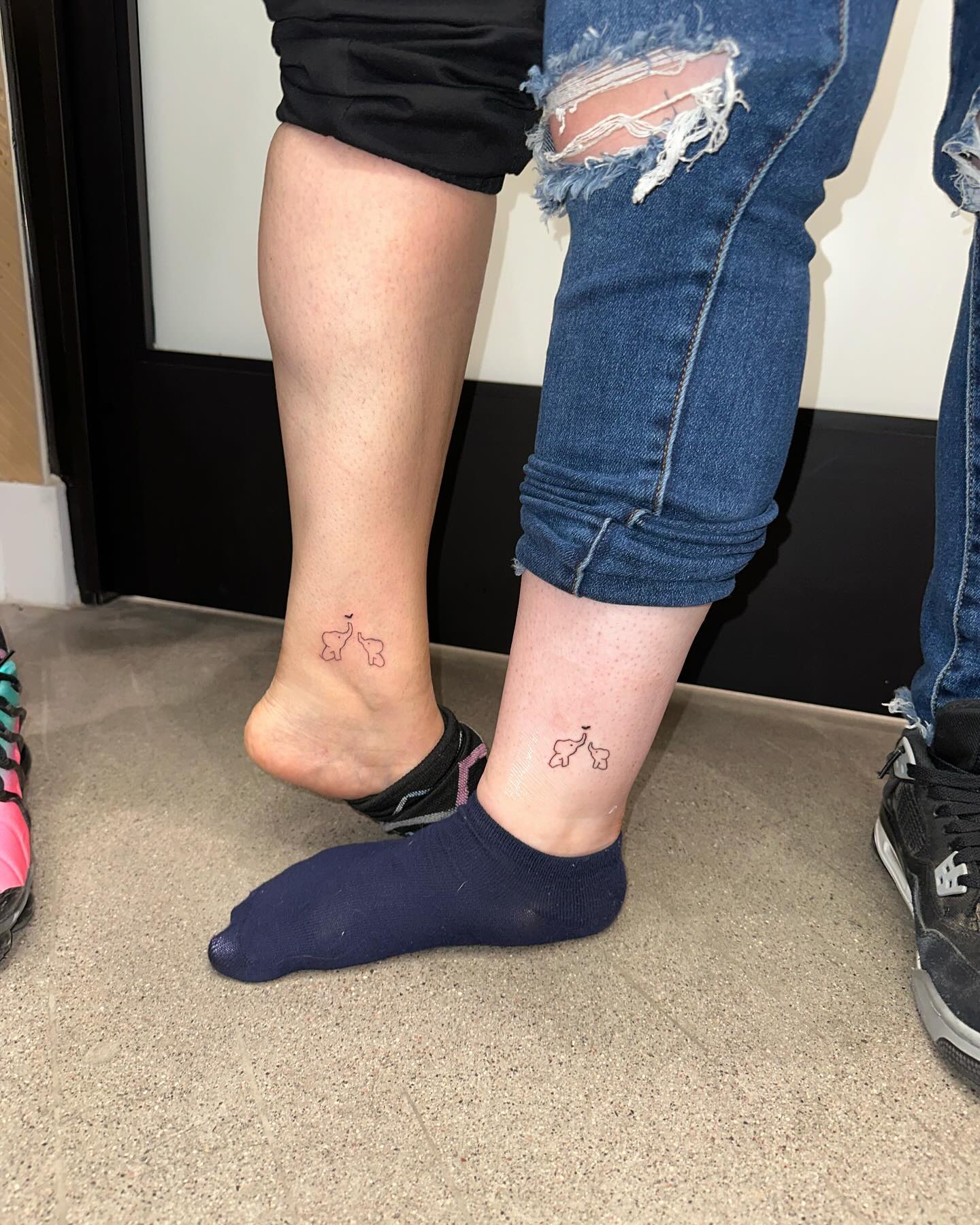 The soft curves keep the design playful and easy to recognize at a small size. Placed near the ankle, the tattoos feel personal and subtle, visible during everyday moments without standing out too boldly.