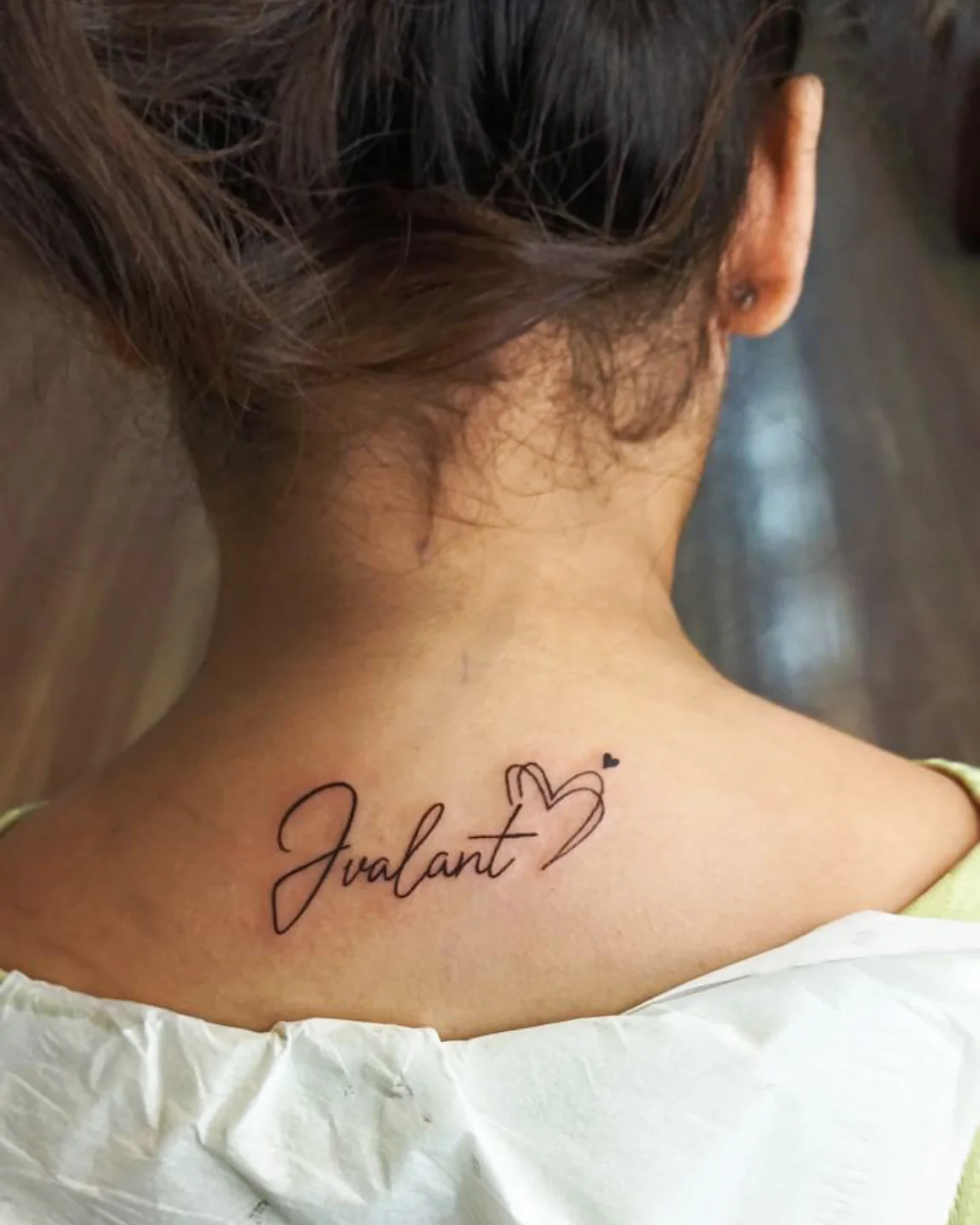 This style suits women who want a name tattoo that clearly expresses love in a subtle, elegant way.