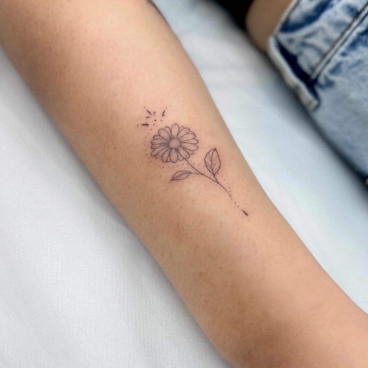 The daisy suggests hope and steady growth, while the minimal layout ensures the tattoo stays elegant on any placement.