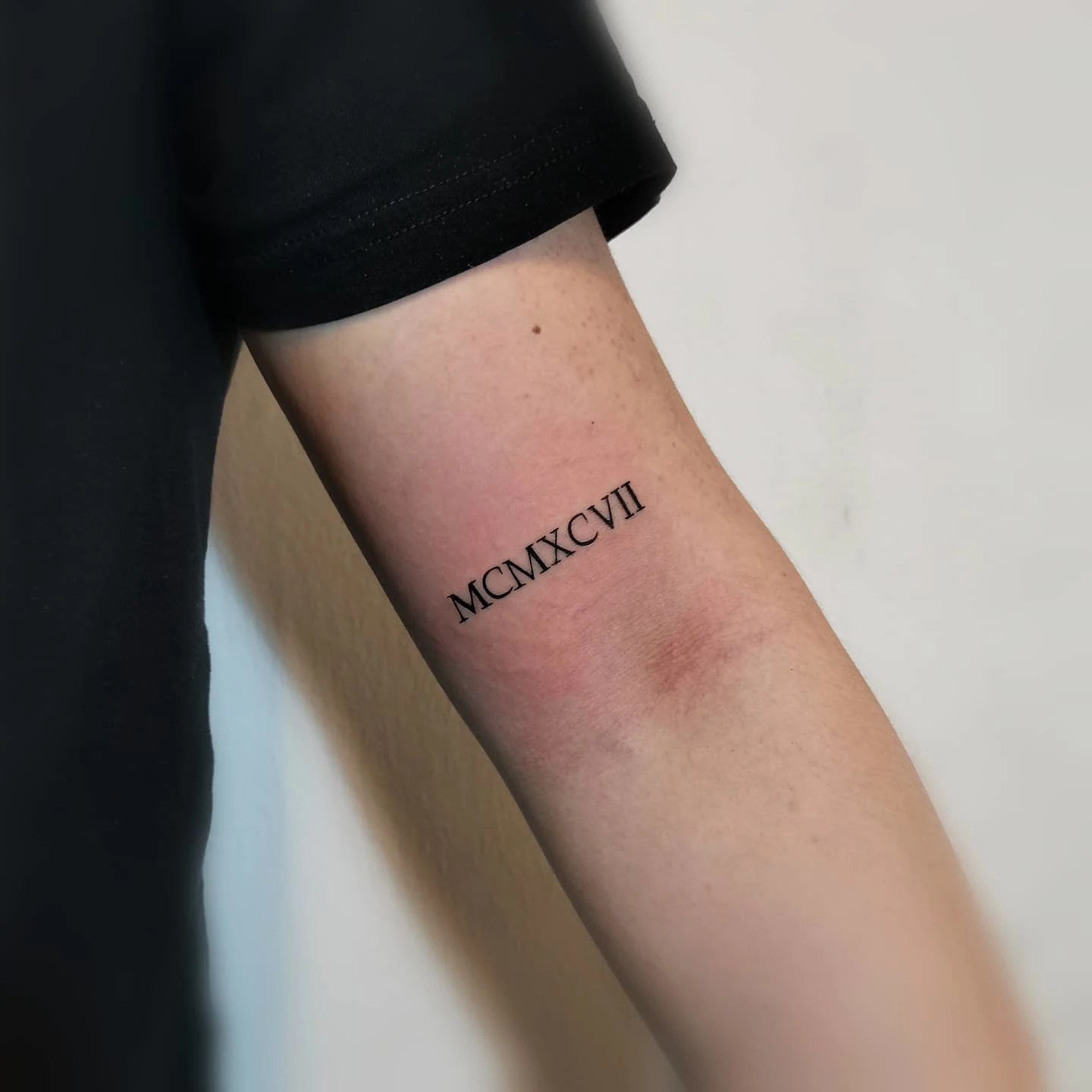 Roman numeral tattoos for men offer a bold and timeless way to commemorate a meaningful date. Whether it’s a birthday, anniversary, or a moment that changed your life, Roman numerals turn simple numbers into a clean, powerful design. Their structured lines and minimalist style make them a popular choice for men who want something meaningful without being overly detailed.