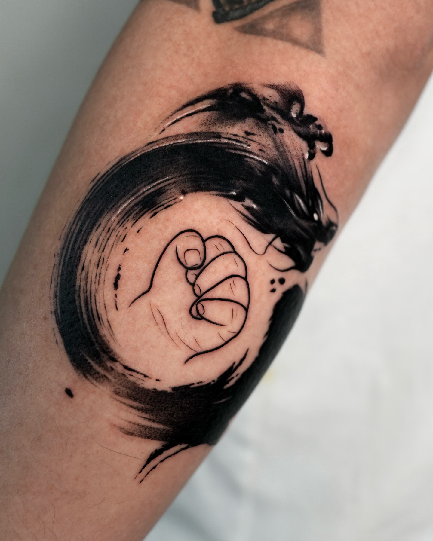 Placed near the elbow, the symbol feels bold and intentional, giving you a sense of support as you move through daily struggles. The clean black lines keep the design clear and strong, making its protective meaning unmistakable.
