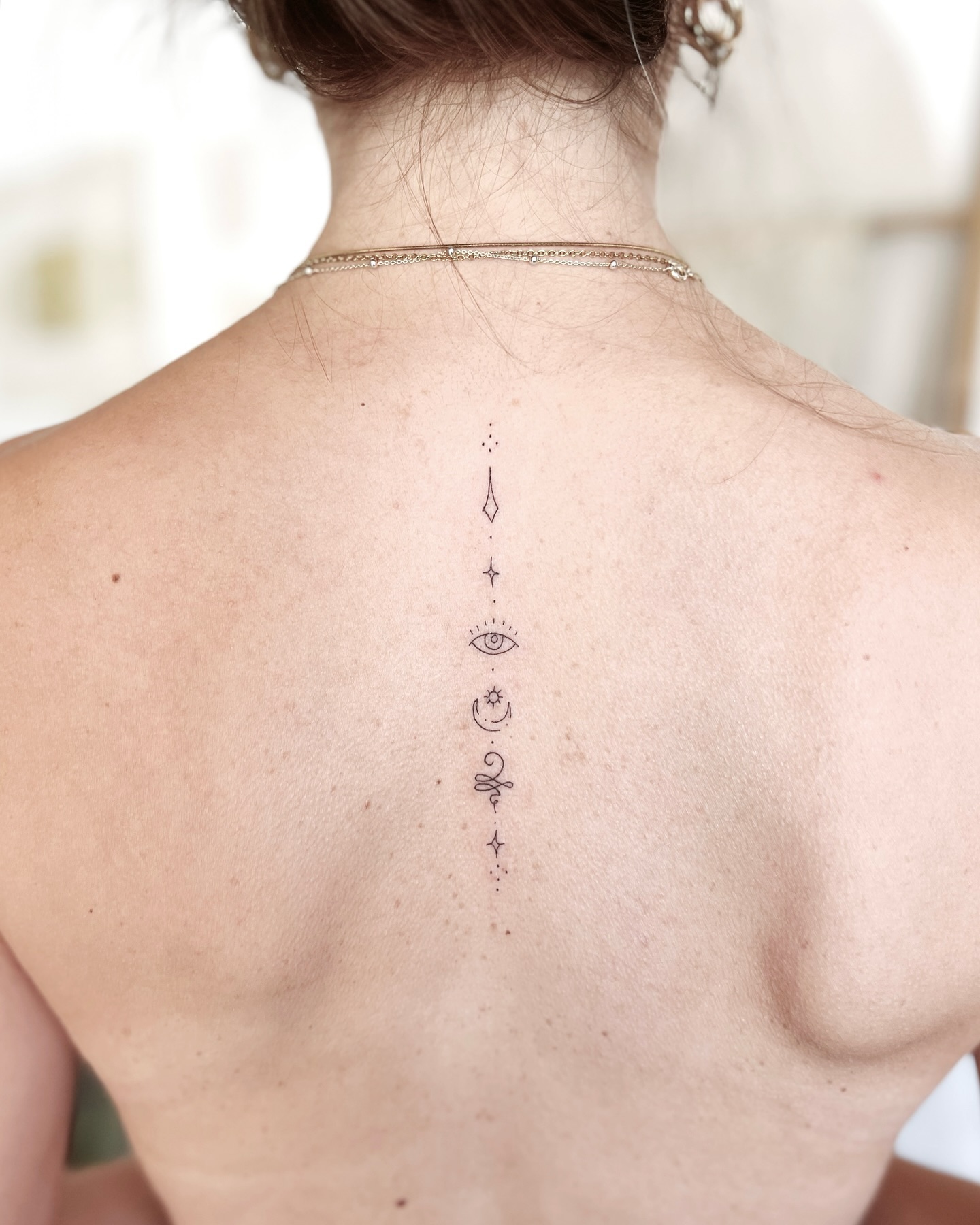 Placed along the spine, the tattoo draws energy upward, reminding you to stay centered, protected, and connected to your inner strength.