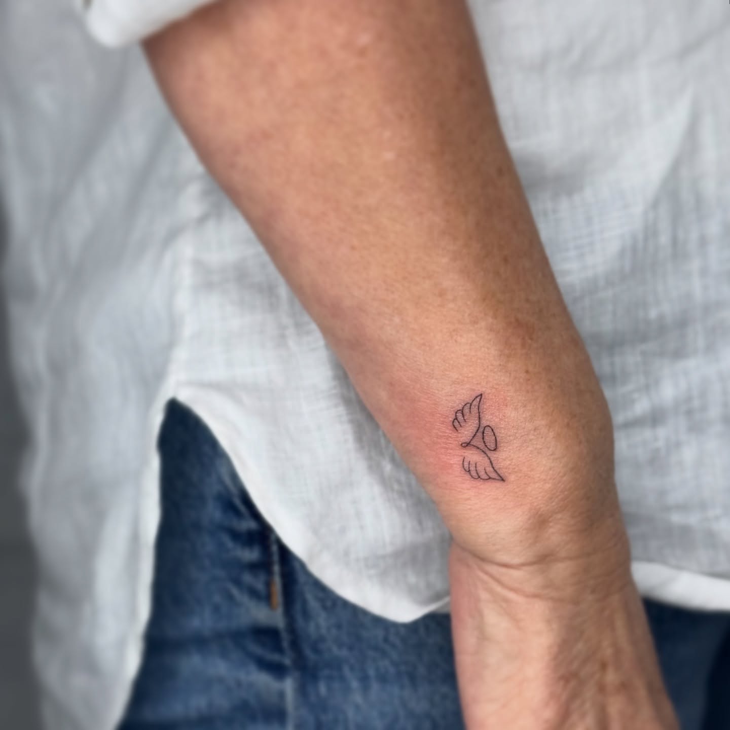 The wings sit gently on the skin, creating a symbol that suggests reassurance and steady guidance.