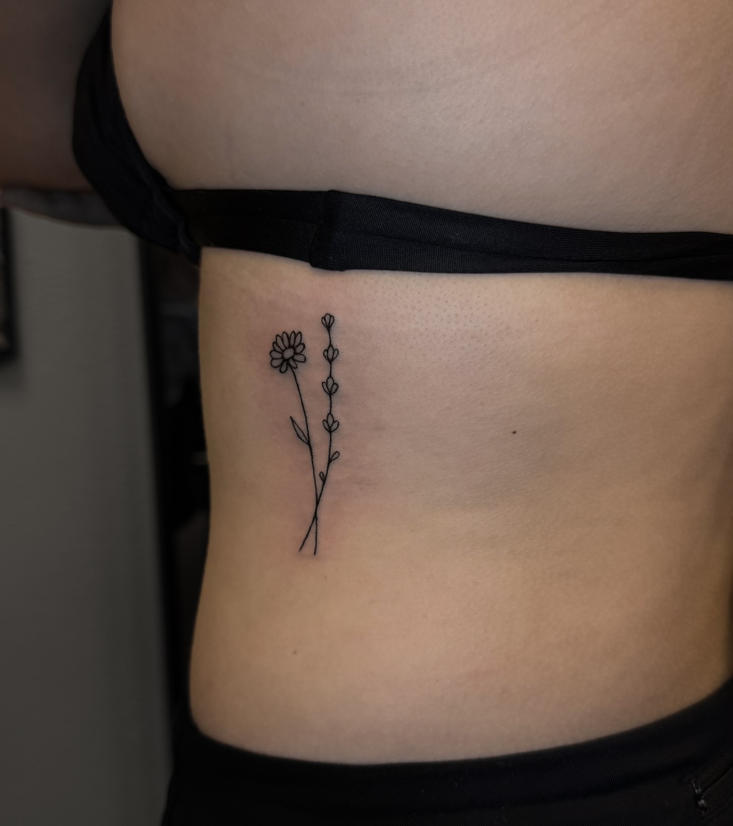 This tiny wildflower tattoo uses thin stems and gentle petals to create a soft and personal look. One stem features a small daisy, while the other rises upward with delicate buds.