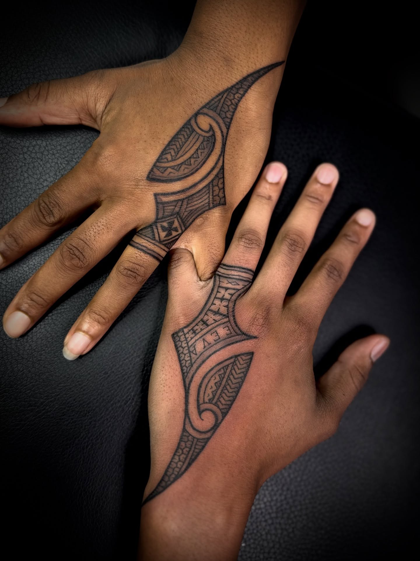 This Polynesian wedding ring tattoo lets couples share a meaningful design rooted in tradition and symbolism.