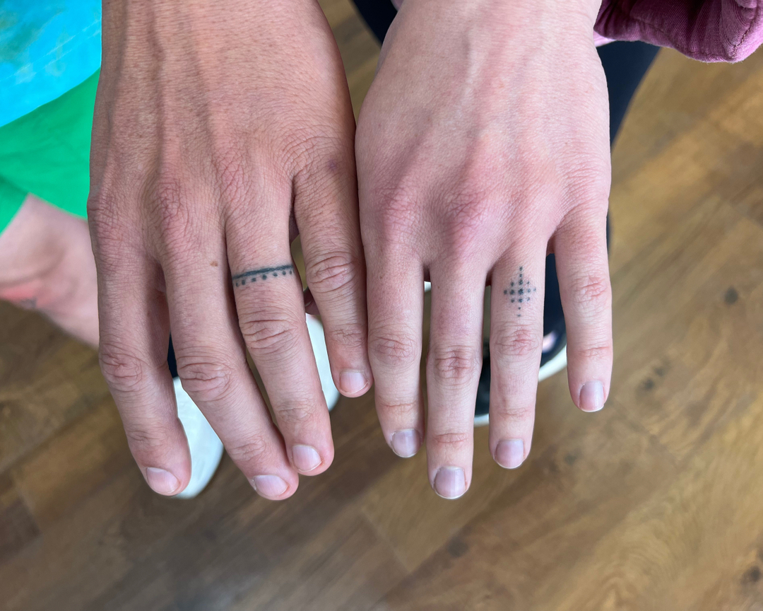 This AHAVA wedding ring tattoo offers couples a quiet and intimate way to express love.